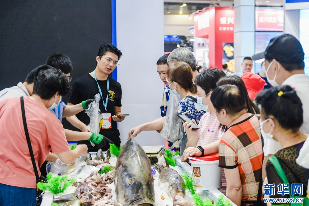 从单一经贸到经济文化融合共享,展会经济不断释放惊人活力。图为客商现场选购渔获产品。新华网发 (福州渔博会组委会供图)