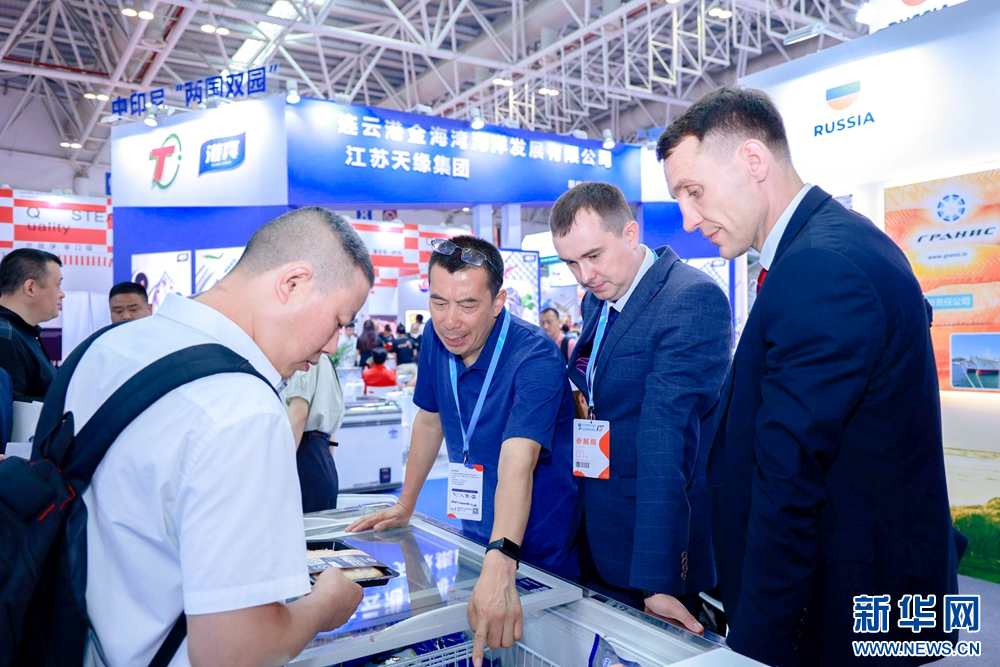 越来越多海外客商赴榕参展,洽谈业务。新华网发 (福州渔博会组委会供图)