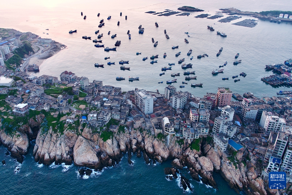 渔船停泊在福建省连江县苔菉镇北茭村海湾内(无人机照片,资料图)。新华社记者 姜克红 摄